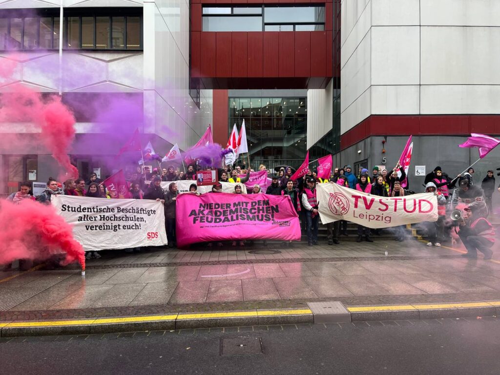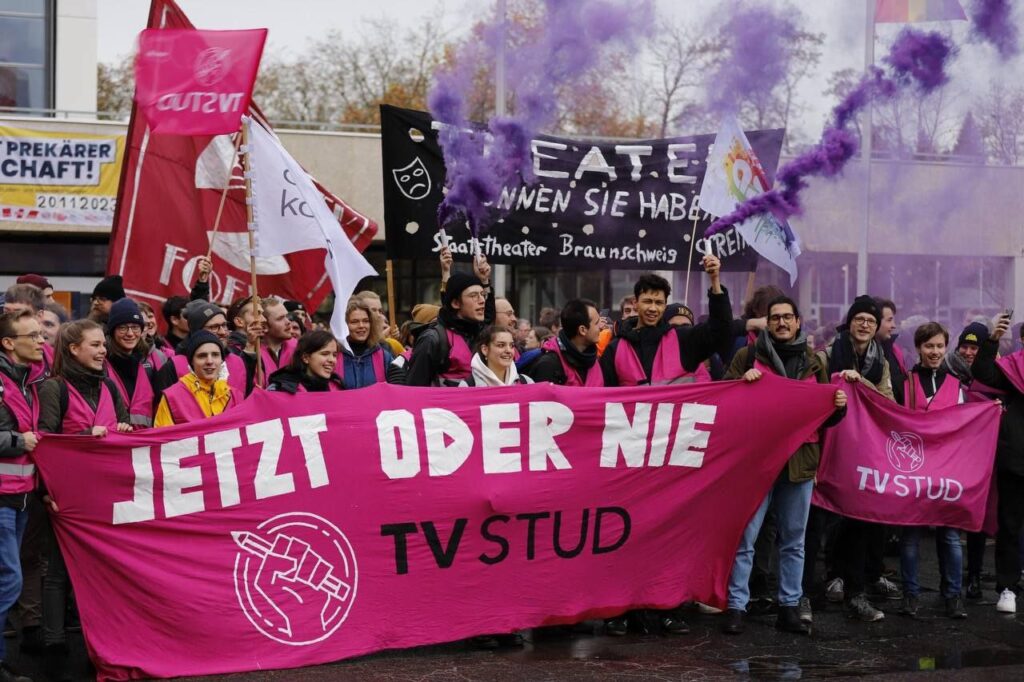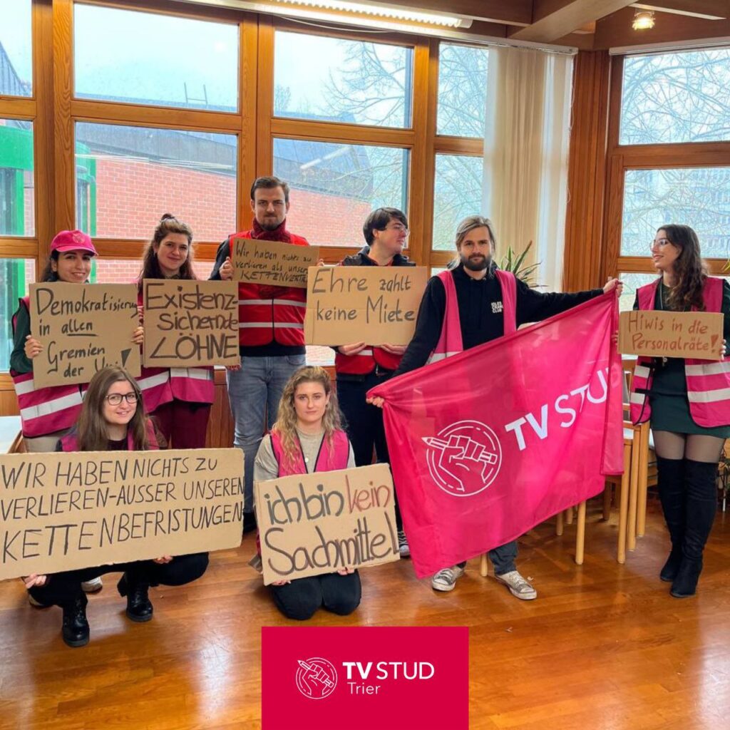 Short contract durations, serial fixed-term contracts and co-determination-free zones must be abolished! We need a fundamental reform of the Wissenschaftszeitvertragsgesetz (WissZeitVG), a nationwide collective agreement for student employees (TVStud) and real co-determination rights through the inclusion of student employees in the staff representation laws of the federal states.