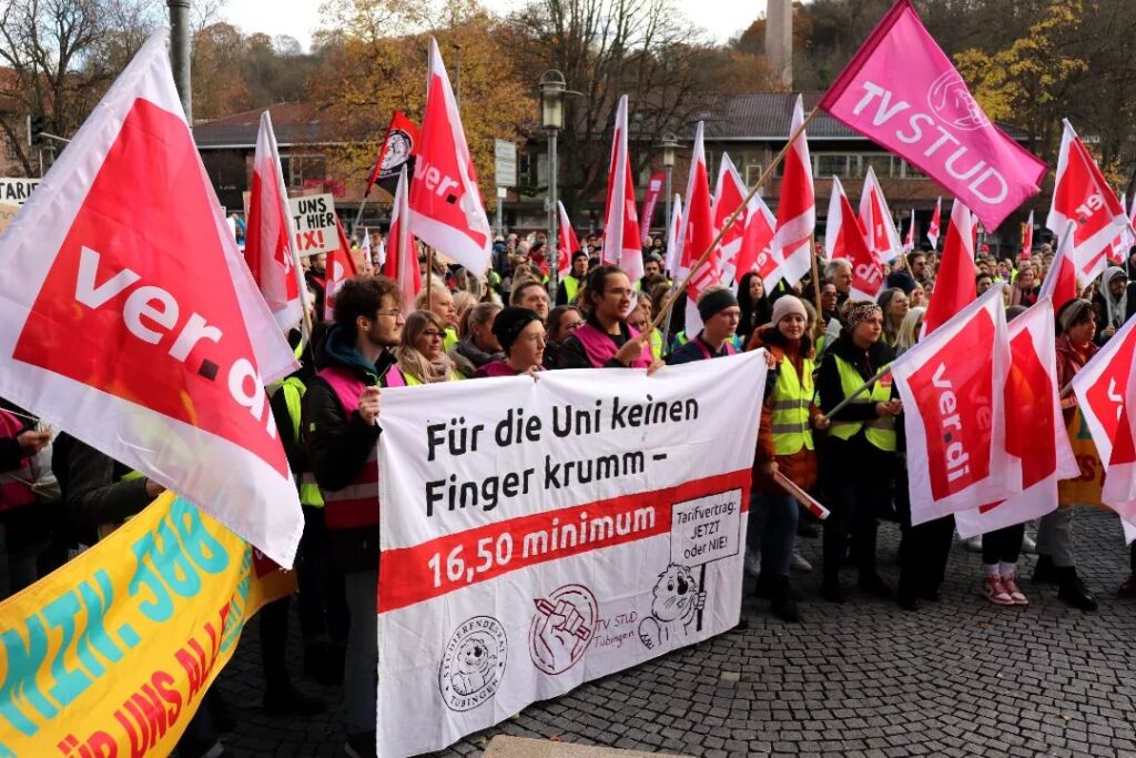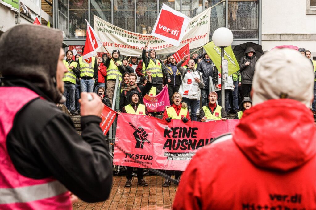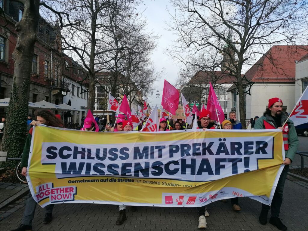 We university employees and students are fighting for higher wages in the collective bargaining round of the federal states and demand a significant increase in BAföG rates! BAföG needs structural reform and rates, which are sufficent to live on!