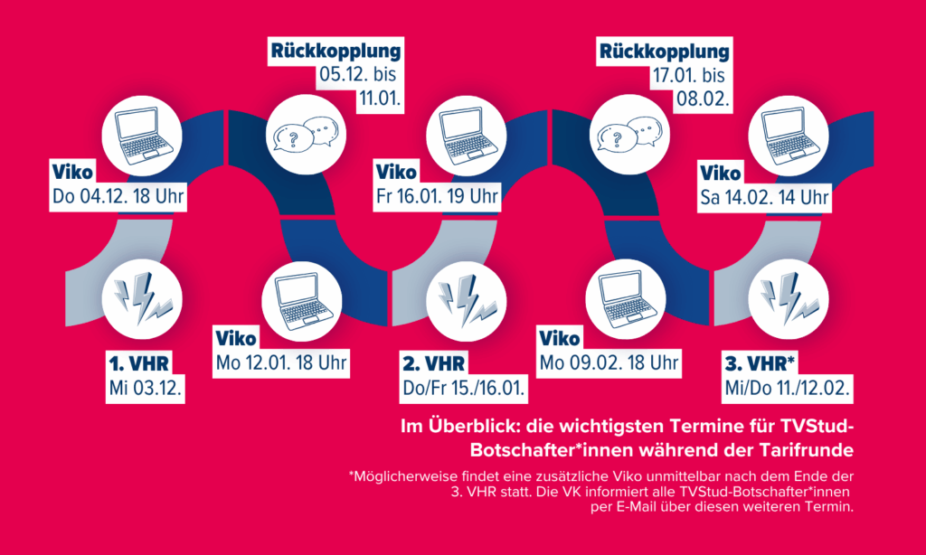 Im Überblick: die wichtigsten Termine für TVStud-Botschafter*innen während der Tarifrunde